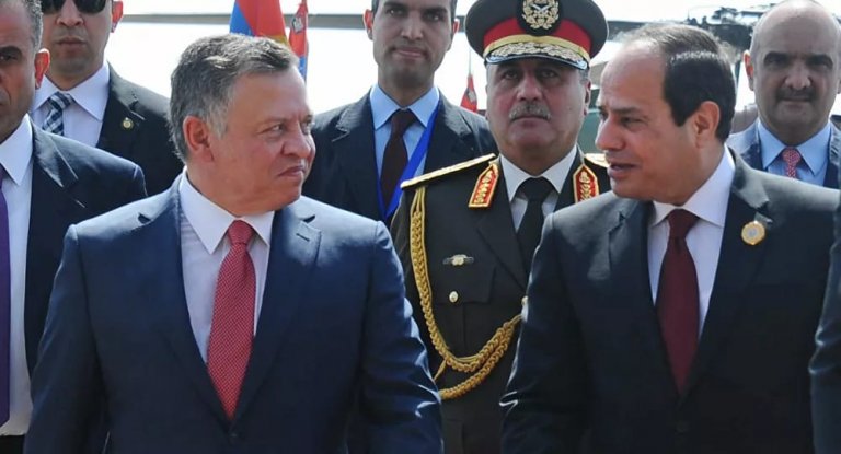 ونشر الديوان الملكي الهاشمي الأردني، عبر تويتر بيانا، قال فيه: الملك عبد الله الثاني والأمير الحسين بن عبد الله الثاني، ولي العهد، يستقبلان الرئيس المصري عبد الفتاح السيسي”.