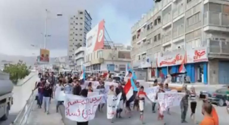 ورفع المتظاهرون لافتات عبّروا فيها عن استيائهم من تردي الجانب الخدمي في المحافظة واستمرار مسلسل الانفلات الأمني وسيطرة النافذين في الحكومة على مراكز الإيرادات تحقيقاً لمصالح شخصية، وهتف المتظاهرون للمطالبة برحيل “البحسني” وتعيين محافظ جديد للمحافظة وفق ما نص عليه اتفاق الرياض.