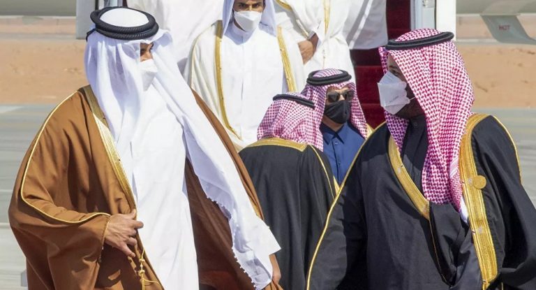 وقالت قناة “الإخبارية” السعودية، إن “ولي العهد السعودي، الأمير محمد بن سلمان، استقبل أمير قطر بعناق فور نزوله سلم الطائرة”.